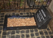 Взамен старой плиты устанавливаем небольшое надгробье из гранита перед массивной стелой, оформляем у его подножья цветник. Периметр получившейся композиции выкладываем гранитной брусчаткой. В результате у нас получилось бюджетная реконструкция половины места захоронения, второй частью клиент не позволил заниматься по личным причинам.